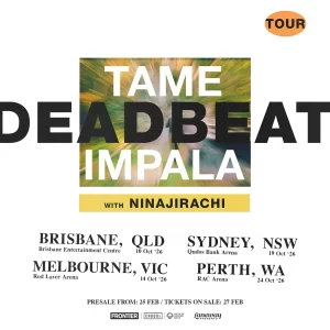 by the partae Groovin The Moo reveals all-star lineup for Lismore return! TAME IMPALA ANNOUNCE DEADBEAT TOUR PERFORMING IN ARENAS IN BRISBANE, MELBOURNE, SYDNEY & PERTH THIS OCTOBER + WITH SPECIAL GUEST NINAJIRACHI (all shows) Tickets on sale Friday 27 February Andrea An Channels Grief and Identity on Powerful New Single “Save You” MASOOD BOOMGAARD ANNOUNCES ADDITIONAL SHOWS FOLLOWING NEW ZEALAND SELL-OUT ADDS BALI DATE DUE TO OVERWHELMING DEMAND Ed Sheeran & Vance Joy – Brisbane 2026 | Suncorp Stadium GARDEN EYES SHARE NOSTALGIC EMO ROCK TRACK “SPEAK SLOW” Real Farmer announce new LP + single + video ‘Heart Out’ / EU/UK tour for May, June JVLY Unveils Mel Blue Remix of “SOUTH” Ahead of SUNDERLUXE EP Luke Million & Muna n Release ‘Smoke & Mirrors’ FOO FIGHTERS (USA) ANNOUNCE AUSTRALIA & NEW ZEALAND TAKE COVER STADIUM TOUR AUSTRALIA – NOVEMBER 2026. PERTH + NEW ZEALAND – JANUARY 2027 Rich Delinquent joins Tyla Yaweh on the dark, euphoric title track from his new mixtape Heartbreak Afterparty Interview: Ata Dune – Holding the Flame Inside TEKOSA Jody Glenham Embraces Endurance and Ease on Self-Produced EP Still Here 1tbsp & Soltera Collide in Two Halves on ‘Soulseek’ — A Rebirth in Motion Ata Dune Ignites the Ambient Form on TEKOSA Interview: Midnight Engine – FREZYA on Building ‘FURTIVA’ as a Cinematic Getaway 1 2 3 … 404 › Share FacebookTwitterPinterestEmail