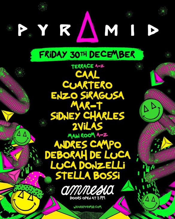 Amnesia’s Pyramid party cemented its reputation as one of the best house and techno nights in Ibiza this summer, in part because it is one of the very few on the island which brings line-ups stacked with depth of talent from new stars to well known pioneers. But it isn’t done yet: there is still time for Pyramid – The Last One of the Season on December 30th to end this historic year in epic fashion. Headlining the Terrace will be Sidney Charles, Enzo Siragusa, Cuartero, Mar-T, CAAL and 2Vilas, with the Main Room featuring Andrés Campo, Deborah de Luca, Luca Donzelli and Stella Bossi. Limited tickets are on sale now so get yours at amnesia.es