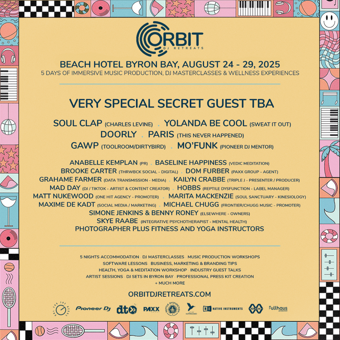 “The response to Orbit has been incredible. Seeing our alumni land dream gigs and sign with industry-leading labels is exactly why we created this platform. The Byron Bay retreat will deliver the same level of career acceleration, set against one of the most beautiful backdrops in the world. We’re buzzing to bring this program to Australia.”