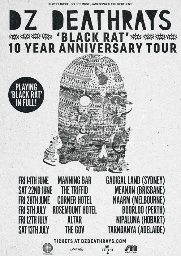 Celebrate ten years of Black Rat this June through to July where DZ Deathrays will revisit all 11 songs in full across Australia. An exclusive anniversary white vinyl repress is available now for pre-order, limited to 300 worldwide.
