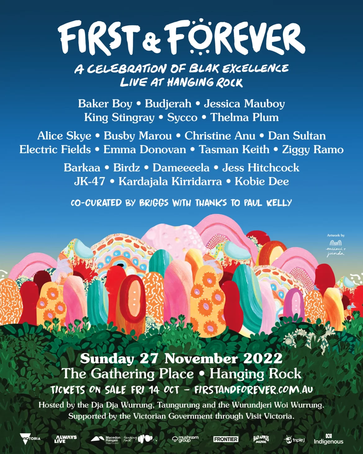 BAKER BOY, BUDJERAH, JESSICA MAUBOY, KING STINGRAY, SYCCO, THELMA PLUM, ALICE SKYE, BUSBY MAROU, CHRISTINE ANU, DAN SULTAN, ELECTRIC FIELDS, EMMA DONOVAN, TASMAN KEITH, ZIGGY RAMO, BARKAA, BIRDZ, DAMEEEELA, JESS HITCHCOCK, JK-47, KARDAJALA KIRRIDARRA, KOBIE DEE + MORE