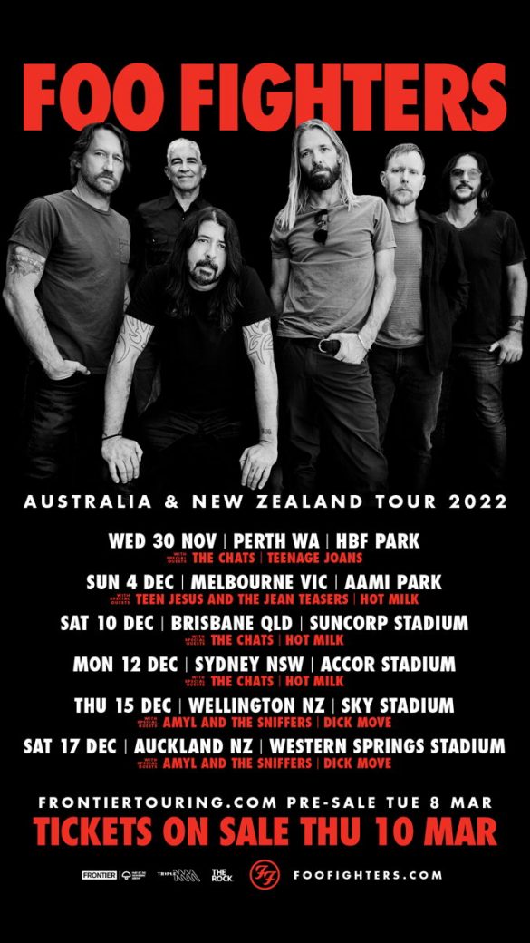 Fresh off their historic 3-hour rock & roll marathon for 30,000 adoring fans last Friday – the first stadium concert in Australia in two long years – Frontier Touring is thrilled to announce global rock giants Foo Fighters will return to Australia and New Zealand in November/December 2022.