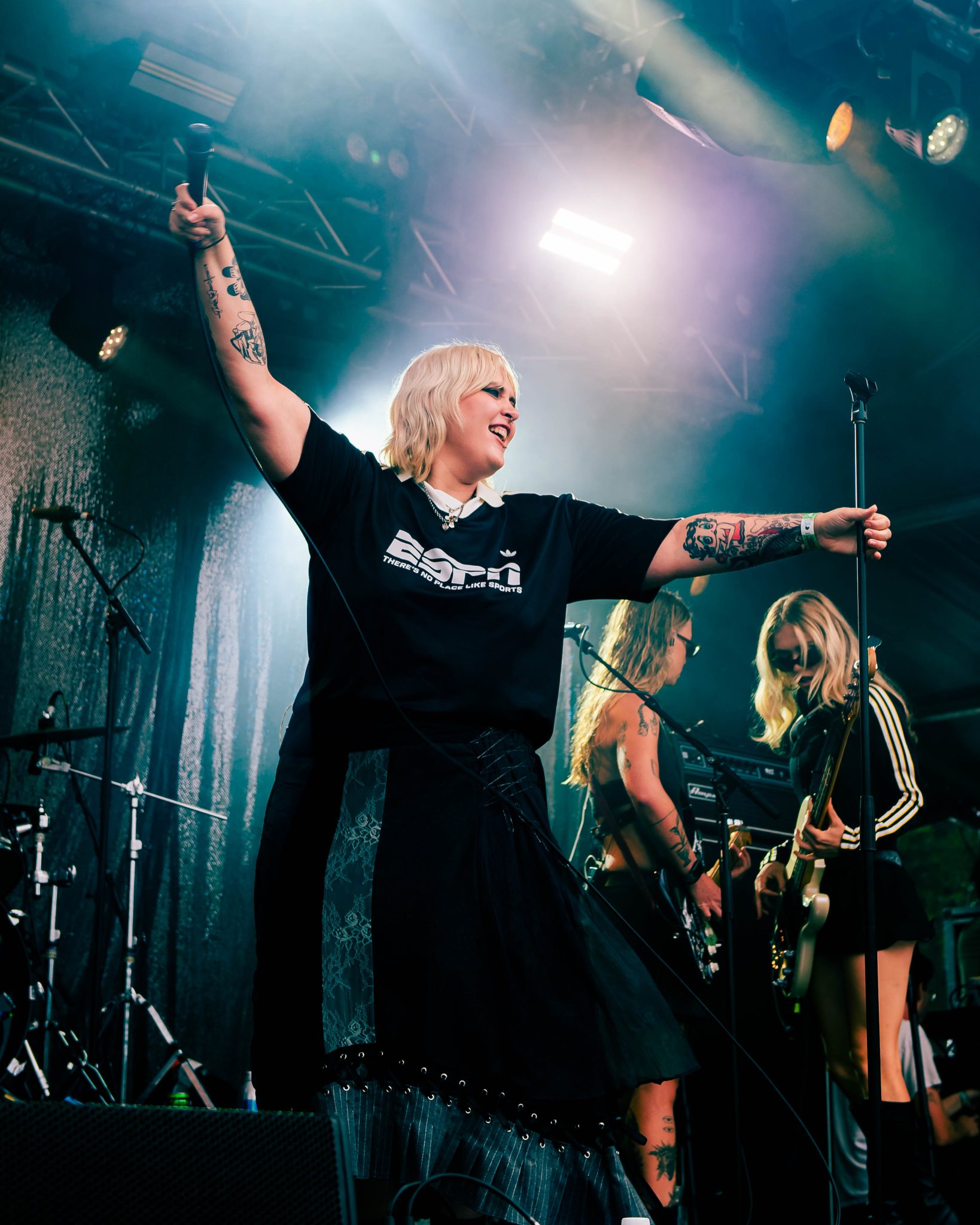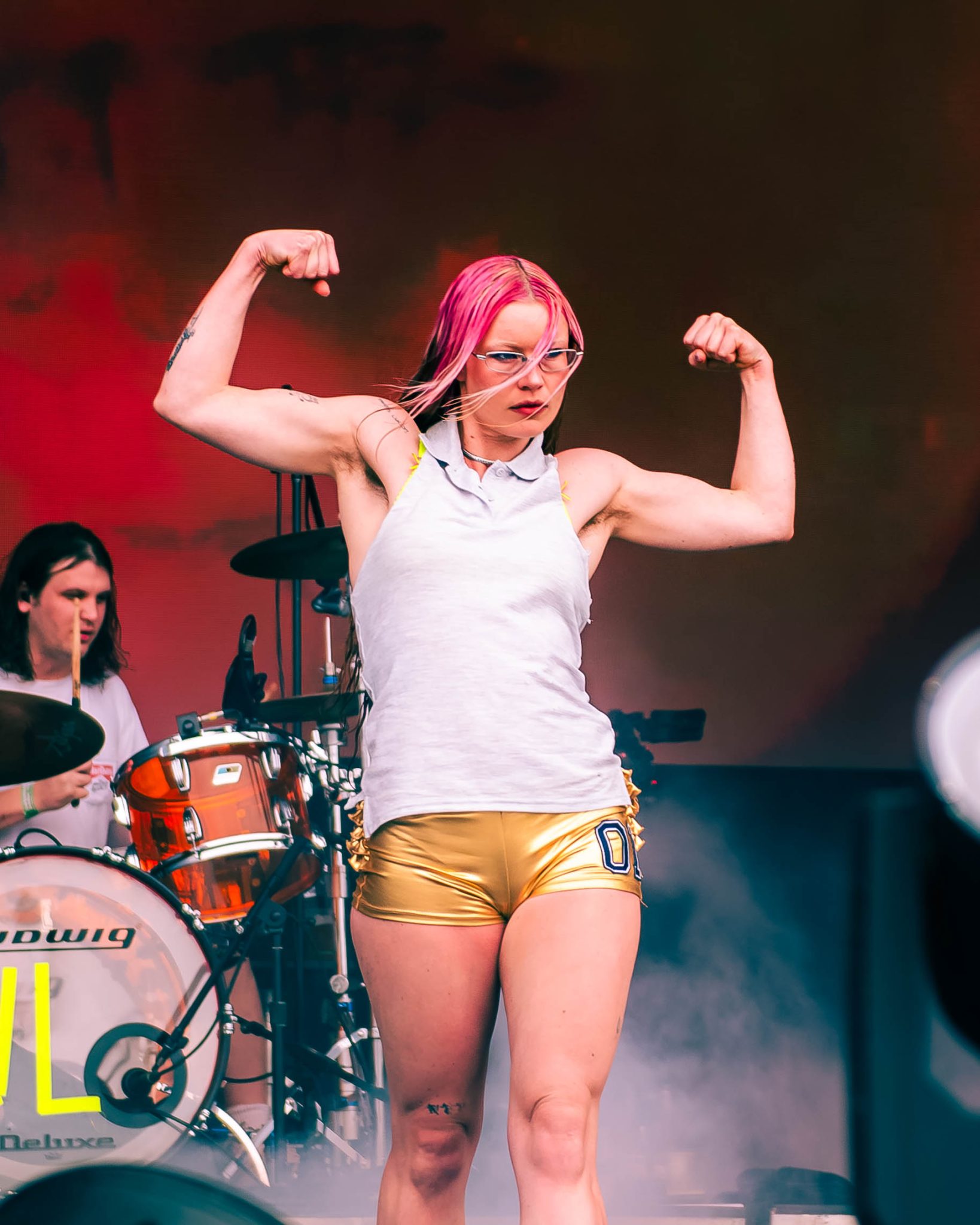I’ve heard that Pink Pantheress put on an incredible show, drawing insane crowds to the tent, so much so it had people climbing trees to get a look. I however, was not one of those brave enough to venture into such a crowd, as I was busy gearing up for Wet Leg over at the main stage.