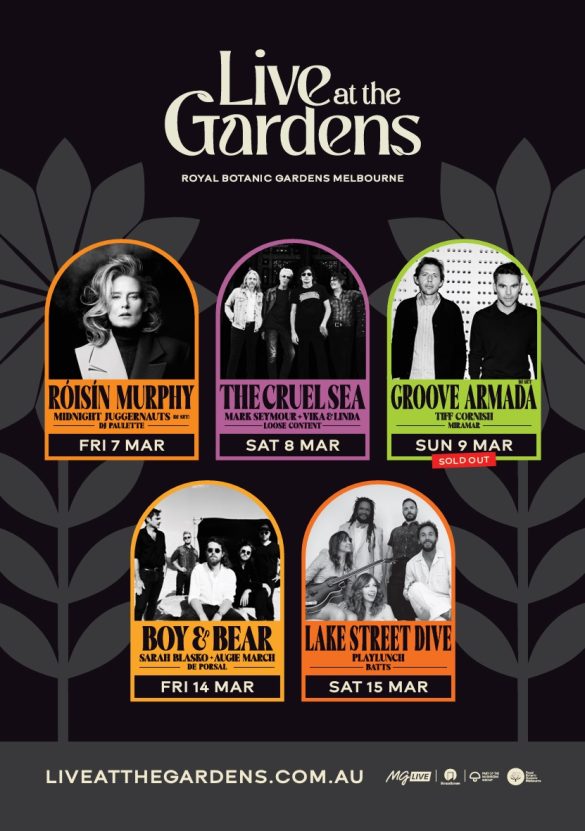 Kicking off this Friday night, 7 March, the series will bring a dynamic mix of dance, rock, indie, electro, jazz and soul to the stunning surrounds of the Garden’s Observatory Precinct in the heart of the city. Don’t miss RÓISÍN MURPHY (Friday 7 March), THE CRUEL SEA (Saturday 8 March), GROOVE ARMADA DJ SET (Sunday 9 March / Sold Out), BOY & BEAR (Friday 14 March) and LAKE STREET DIVE (Saturday 15 March).