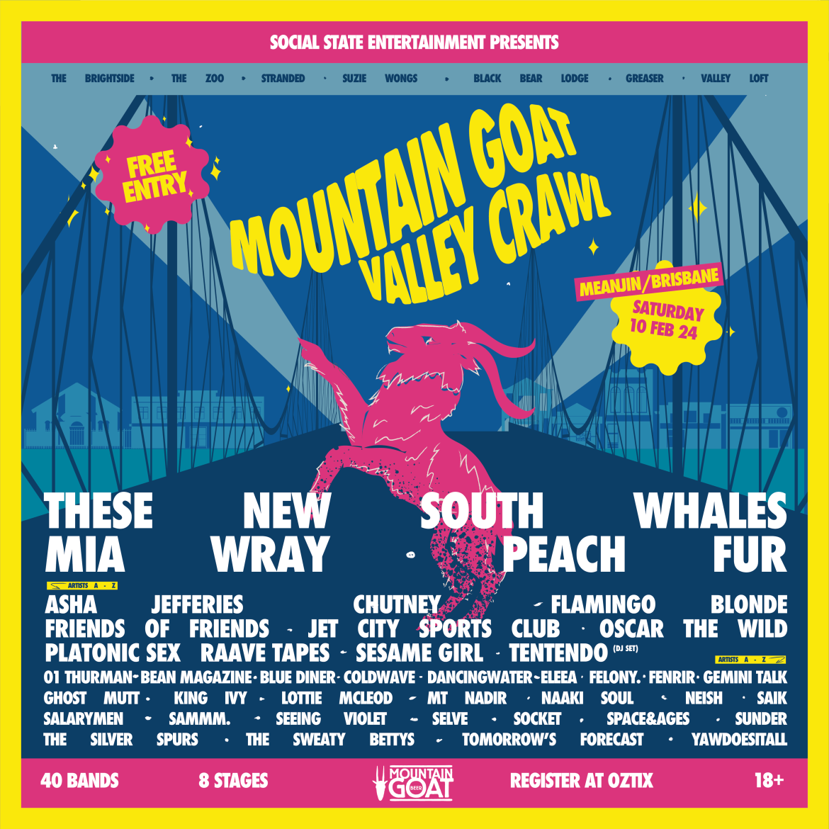 MOUNTAIN GOAT VALLEY CRAWL SET TIMES HAVE LANDED UNLEASH THE GOAT ACROSS 8 VENUES, 40 ARTISTS, FREE ENTRY
