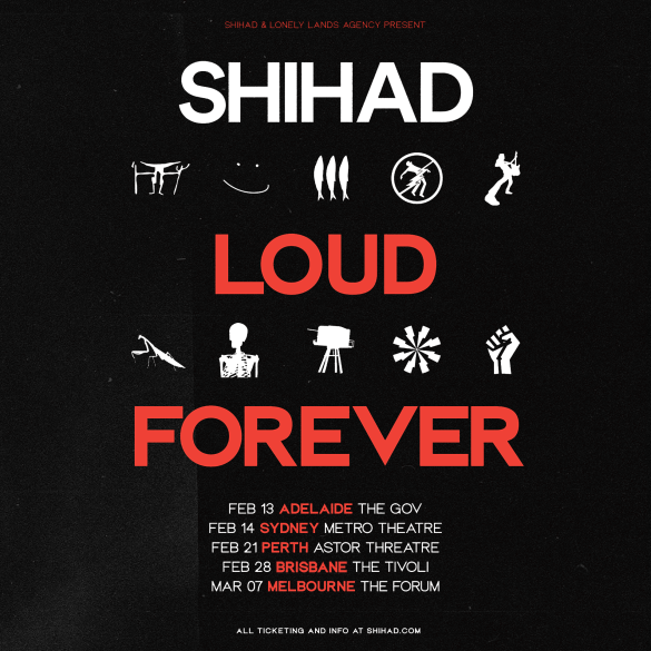 Forged in the fires of 1988’s thrash metal scene, Wellington’s SHIHAD quickly evolved into one of Australia’s most beloved bands. SHIHAD (Jon Toogood, Karl Kippenberger, Phil Knight, Tom Larkin) has sold over a quarter of a million records, released ten studio albums, received multiple ARIA nominations, won countless Aotearoa Music Awards and toured endlessly through the world’s most loved clubs, festivals, and arenas. Touring with metal icons like Faith No More, Tool, Back Sabbath, Motorhead and one of their biggest early influences, AC/DC. Live is where SHIHAD is truly an oversized presence.