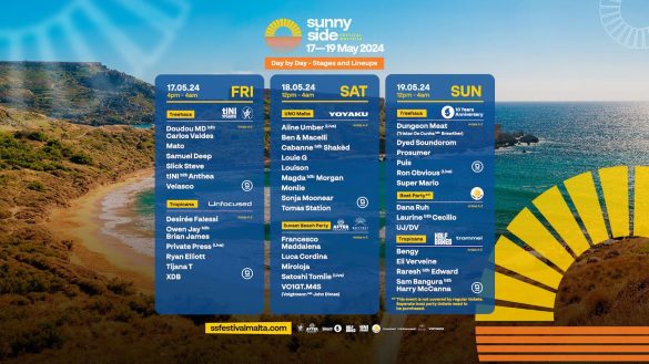The debut edition of SUNNY SIDE Festival is all set to take over the picturesque island of Malta, from May 17th to May 19th, 2024. This extraordinary musical event will showcase the top-tier artists of contemporary electronic music, while immersing the attendees in the stunning natural beauty of the island. Now, the festival reveals the day-by-day lineup breakdown for the showcases and stages, including details on where and when the likes of SONJA MOONEAR, RARESH, MAGDA, RYAN ELLIOTT, TIJANA T, SATOSHI TOMIIE LIVE, CABANNE, EDWARD, tINI, DYED SOUNDOROM, TOMAS STATION and DANA RUH, will play. Besides the impressive lineup, the SUNNY SIDE FESTIVAL will welcome some of the most prominent promoters, labels and communities as stage partners at the festival. The program will unfold across three stages, Treehaus and Tropicana at Malta’s premier open-air venue, Uno Malta, at the lively Tortuga beach as well as at the afternoon boat party.