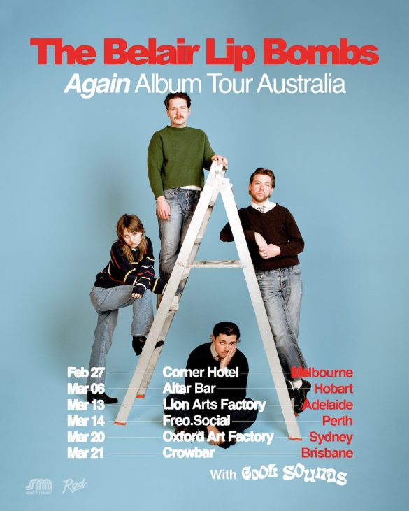 Again is an undeniably polished effort from The Belair Lip Bombs, who boldly present an elevation of their humble beginnings, to a band on a trajectory long beyond the DIY venue foundations. The group’s upcoming Australian tour sees the group performing across revered rooms as the Corner Hotel, Oxford Art Factory, Crowbar, Freo.Social, Lion Arts Factory and Altar. See all tour routing dates BELOW.