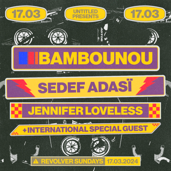Four Pitch Music & Arts artists join us at the infamous Revolver, providing the perfect remedy to the labour weekend festivities. Joining us on Sunday, March 17th are Bambounou, Sedef Adasï , Jennifer Loveless alongside an International Special Guest as they take over the cage for a night of dynamic and precise selection. Explore the artists below. Limited tickets are available for this show – secure yours now. |
